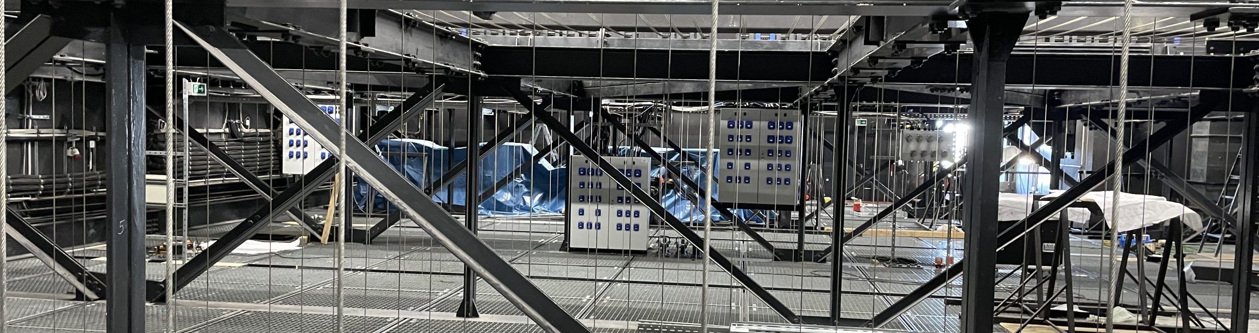 In addition to dismantling the entire old end, the project also included the installation of new drives such as brochure hoists, heavy-duty hoists, panorama hoists, zero-aisle hoists, backstage hoists and point hoists as well as a veil hoist and a portal screen hoist. In addition, the entire electronic control system, including all control consoles, was brought up to the latest state of the art and adapted to the safety standards of modern stage control systems.